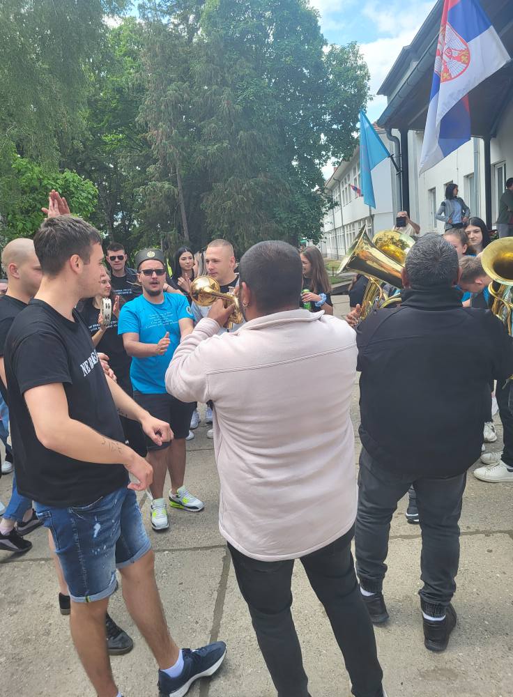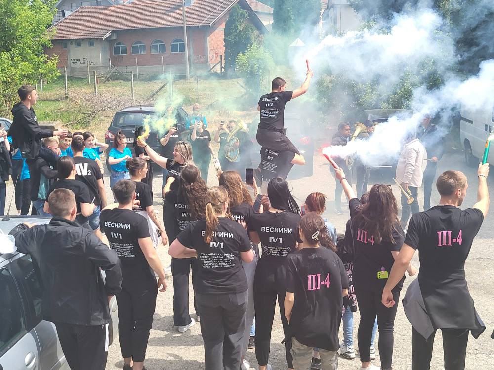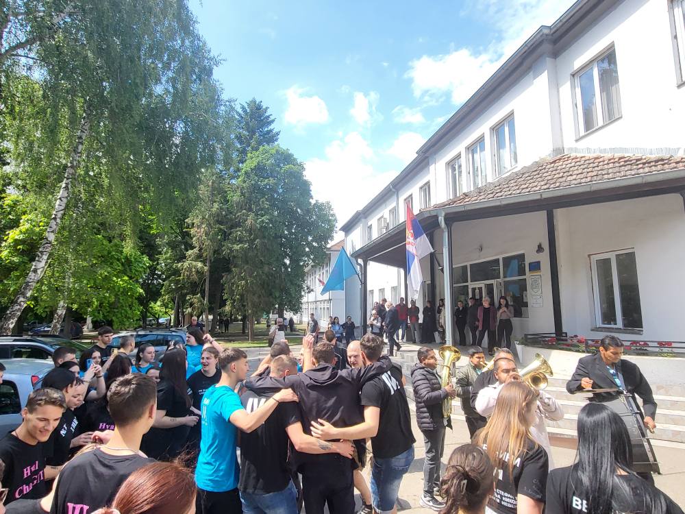 За матуранте средњих школа данас је последњи наставни дан у овој школској години. Традиционално матуранти наше школе последњи наставни дан обележили су прославом у школском дворишту уз песму и игру.