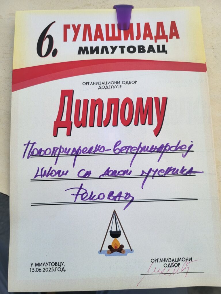 Новости Наступ на гулашијади у Милутовцу admin 15/06/2025 Одличан наступ наше школе на 6. гулашијади у Милутовцу. Наша школа освојила је диплому и захвалницу за прво место ван категорије. Подели:TweetPrint ← САЈАМ ЗАДРУГАРСТВА У ЈАГОДИНИ, извештај тв КЦН Емисија о нашој школи на ТВ ТРСТЕНИК →