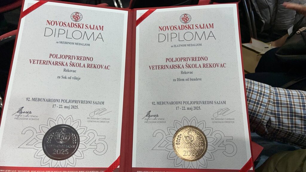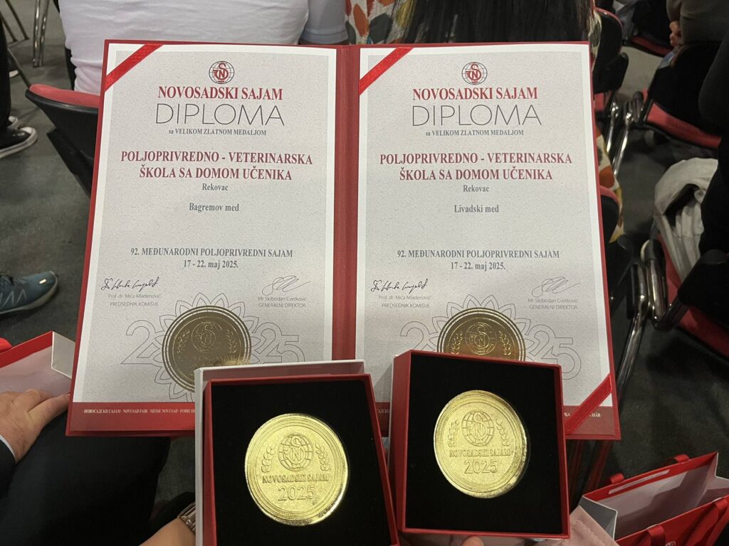 На 92. међународном сајму пољопривреде у Новом Саду наша школа освојила је дипломе и златне медаље. Две велике златне медаље наша школа добила је за ливадски мед и багремов мед. Великом златном медаљом одликовани смо за сок од јабуке, а диплому са златном медаљом добили смо за сок од јагоде. Златном медаљом одликовани смо за џем од бундеве и сребрном медаљом за сок од вишње.